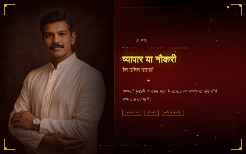 आज के प्रतिस्पर्धी एवं शीघ्रगामी युग में केवल कठिन परिश्रम ही सफलता का मूल नहीं है, अपितु सही समय पर उचित निर्णय लेना अनिवार्य है। वर्तमान जगत् में लोग स्वयं के तात्कालिक वा क्षणिक विचारानुरुप कार्य में प्रवृत्त हो जाते हैं परन्तु - ज्योतिष शास्त्र की फल कथन विधा आपके मूल एवं स्थाई गुण धर्म पहचान कर तदनुरूप कार्य करने का आदेश देता है, यह आपकी कुंडली के कर्मस्थान, भाग्येश, धनेश एवं लाभेश की स्थिति का विश्लेषण कर आपको व्यवसाय के सही मार्ग की पहचान कराती है। ग्रहों का गोचर और महादशाएँ यह निर्धारित करती हैं कि आपका निवेश कब फलीभूत होगा और कब आपको सतर्क रहने की आवश्यकता है। ज्योतिषीय परामर्श के माध्यम से हम यह जान सकते हैं कि आपके लिए स्वयं का व्यवसाय फलदायी होगा या नौकरी , और कौन सा क्षेत्र आपके भाग्य के अनुकूल है। चाहे नया स्टार्टअप शुरू करना हो, साझेदारी का निर्णय लेना हो या घाटे से निकलना हो, सही मुहूर्त और उचित ग्रहशान्ति आपके व्यापार में नई ऊर्जा भर सकती है। आपके व्यवसाय के नाम का चयन हो, कार्यालय का वास्तु व्यवस्थित करना हो , यह सभी आपको प्रभावित करते हैं, अतः उचित परामर्श उचित व्यक्ति द्वारा लें। यह समागम आपको श्रेष्ठ विश्वविद्यालयों से ज्ञान प्राप्त विद्वानों से परामर्श प्रदान करता है।